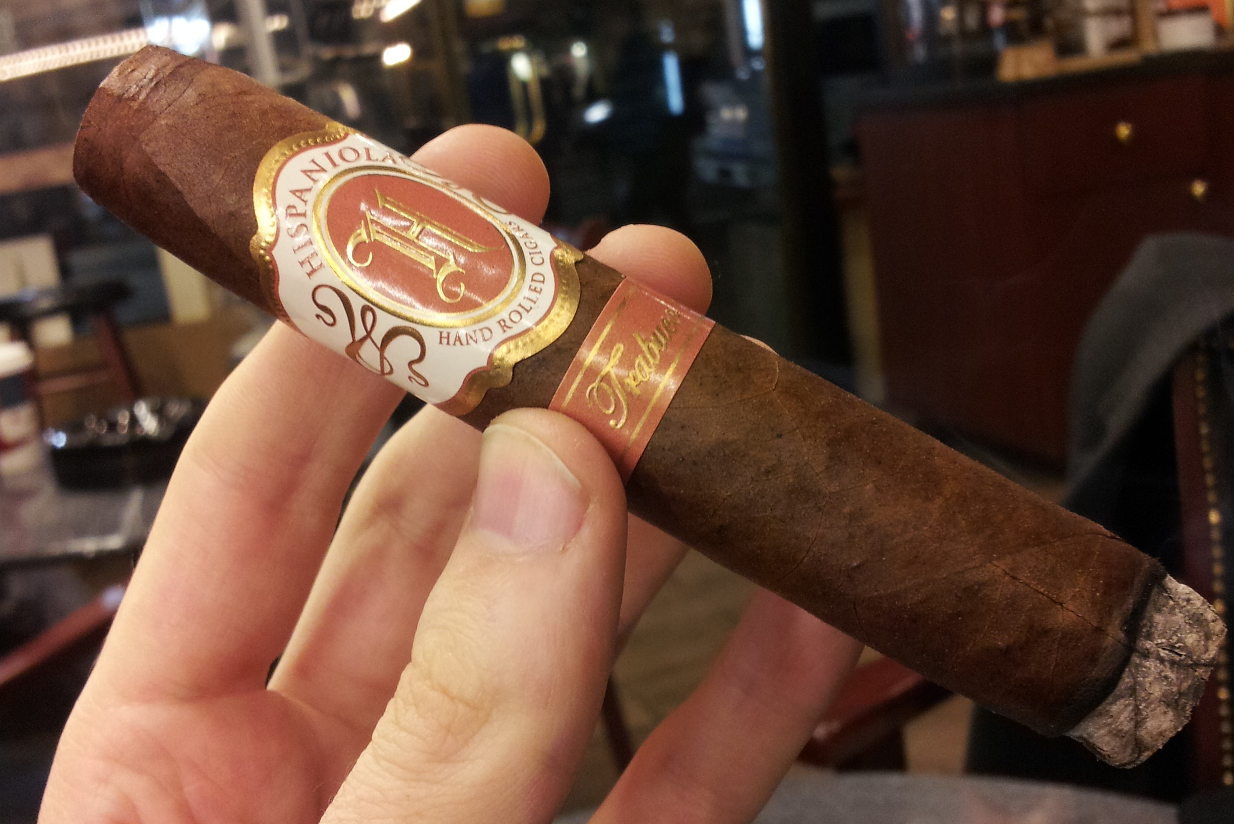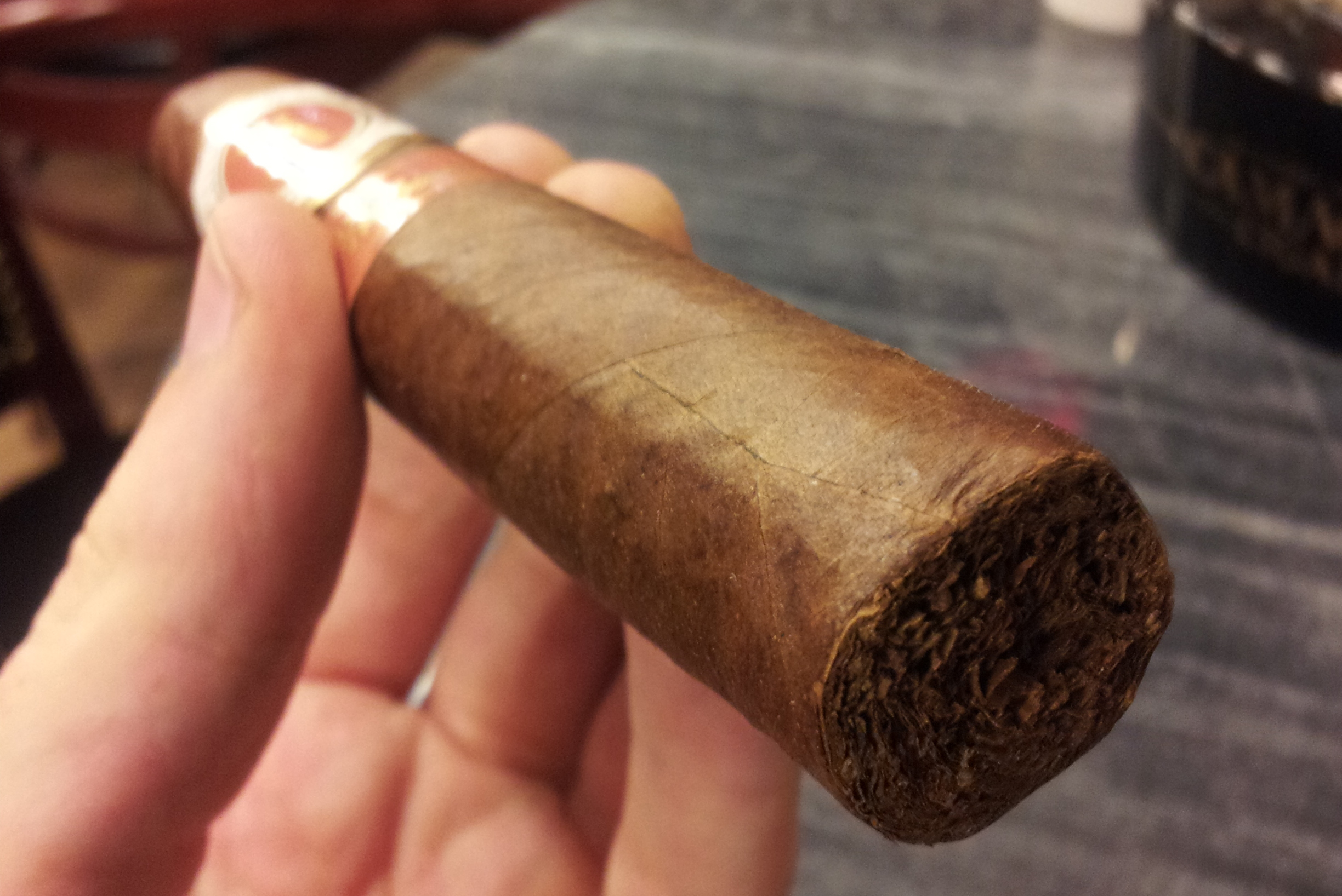 A precise cut begins the first third. The cigar starts with espresso and a dry cedar and leather taste. Flavors of unsweetened espresso with light bitterness, nut flavor and white pepper lingers for a long finish. The retrohale is enjoyable and there is no harshness. Halfway into the first third the cigar is now slightly richer in taste. Visually, the ash is medium grey and did not last but about an inch.