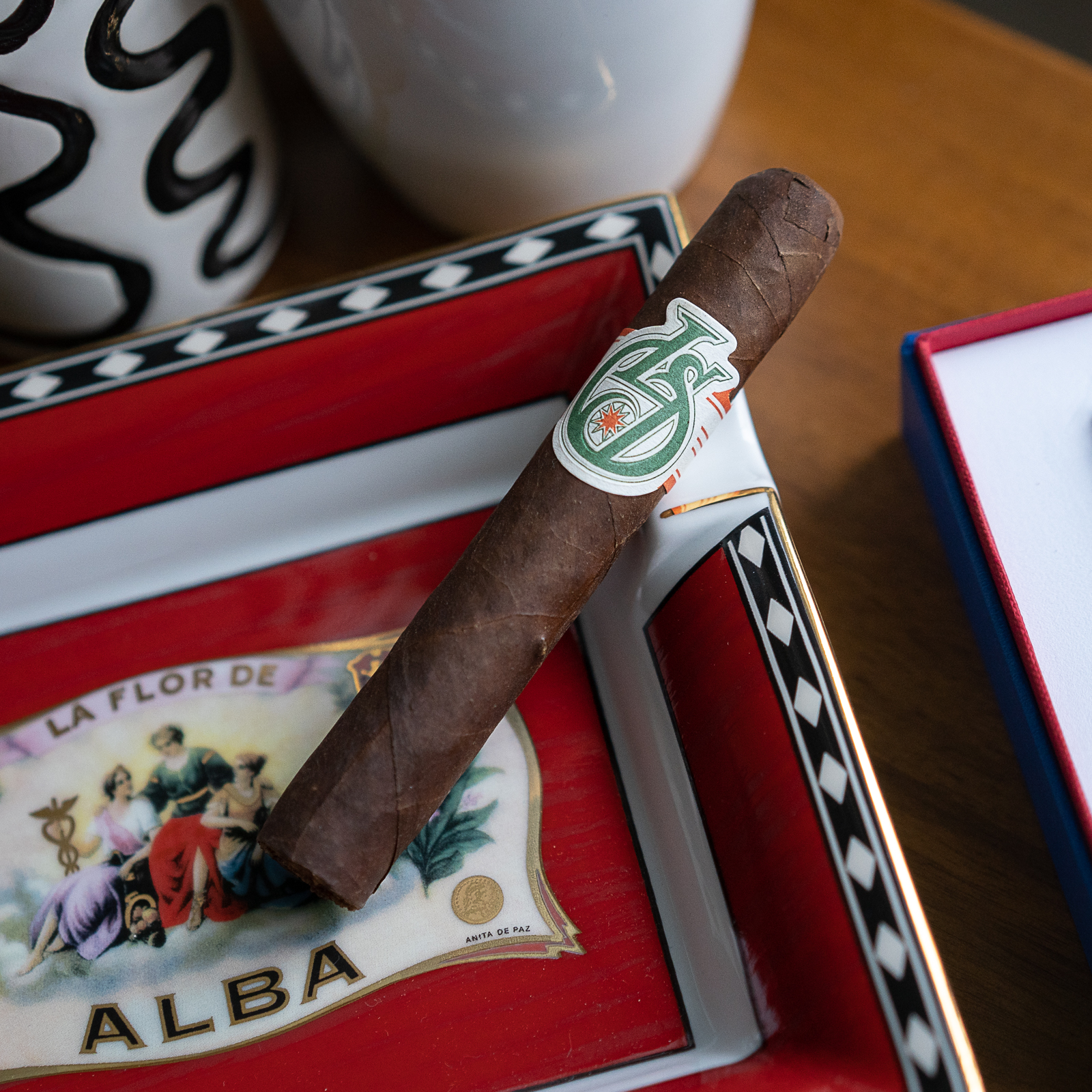 The second third surprises me when the so-far sturdy ash build up suddenly drops to the ground. However, the burnline stays flawless and the cigar hold its temperature immaculately. The cigar is a thick and rich smoking experience. It grips your tongue with hot cocoa and throat tingling spice. I’m not complaining, but it can dry your mouth out at times. Stay hydrated! Across the board, the cigar also picks up a floral and perfumey characteristic with more leather on the aroma, and toast on the retro.